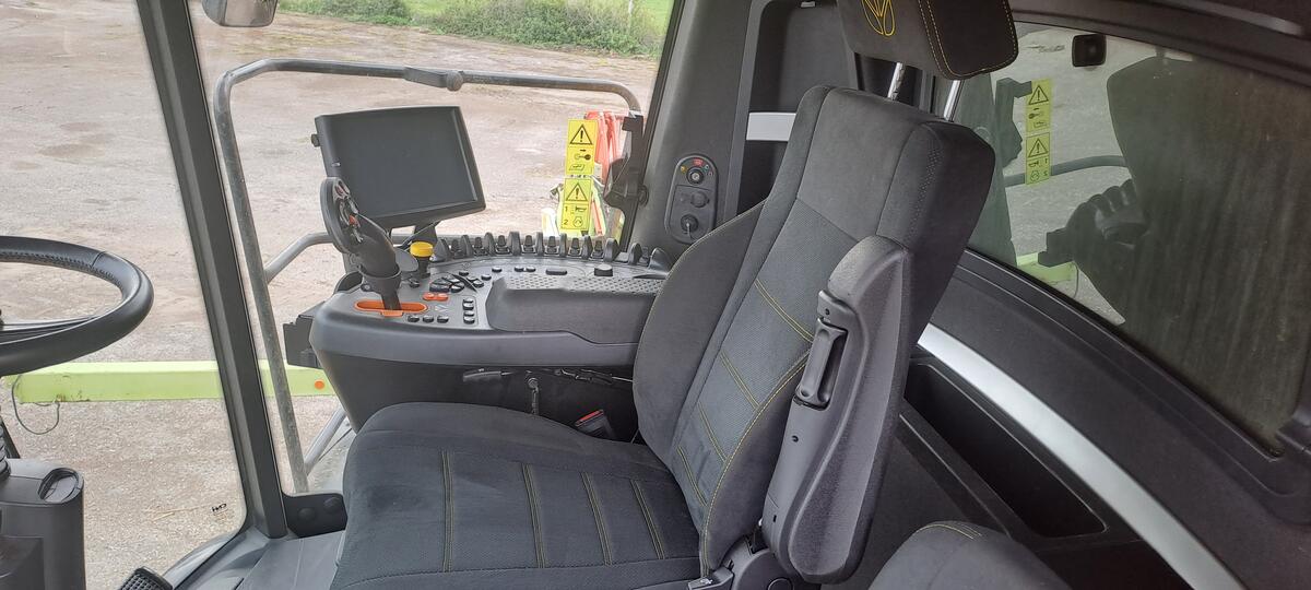 automatická klimatizace, loketní opěrka, multifunkční páka, odvětrávaná sedačka, radio s bluetooth, sedadlo spolujezdce, lednička, elektricky nastavitelná zrcátka, satelitní navigace, systém automatického řízení, výnosoměr, vlhkoměr, drtič slámy, adaptér na obiloviny, přepravní podvozek pod adaptér, aktivní děliče