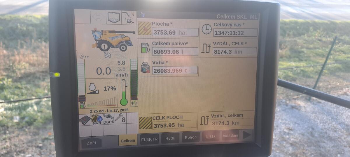 automatická klimatizace, loketní opěrka, multifunkční páka, LED osvětlení, kožený volant, radio s bluetooth, monitor, elektronická parkovací brzda, tempomat, sedadlo spolujezdce, lednička, elektricky nastavitelná zrcátka, satelitní navigace, automatické řízení produktivity, výnosoměr, vlhkoměr, automatické nastavení sklizňového ústrojí, drtič slámy, adaptér na obiloviny, přepravní podvozek pod adaptér