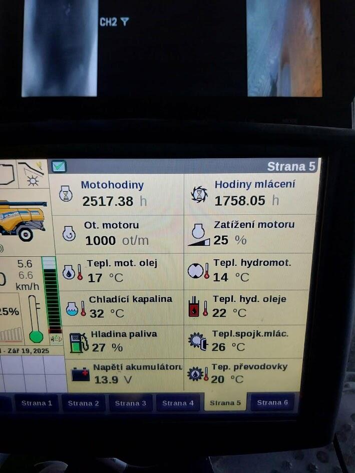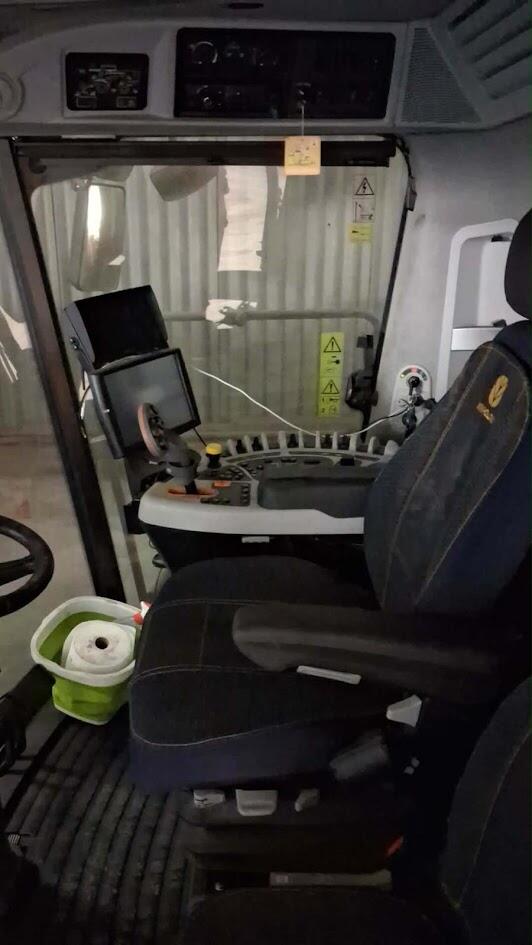 automatická klimatizace, loketní opěrka, multifunkční páka, radio, monitor, elektronická parkovací brzda, tempomat, sedadlo spolujezdce, lednička, drtič slámy, adaptér na řepku, přepravní podvozek pod adaptér