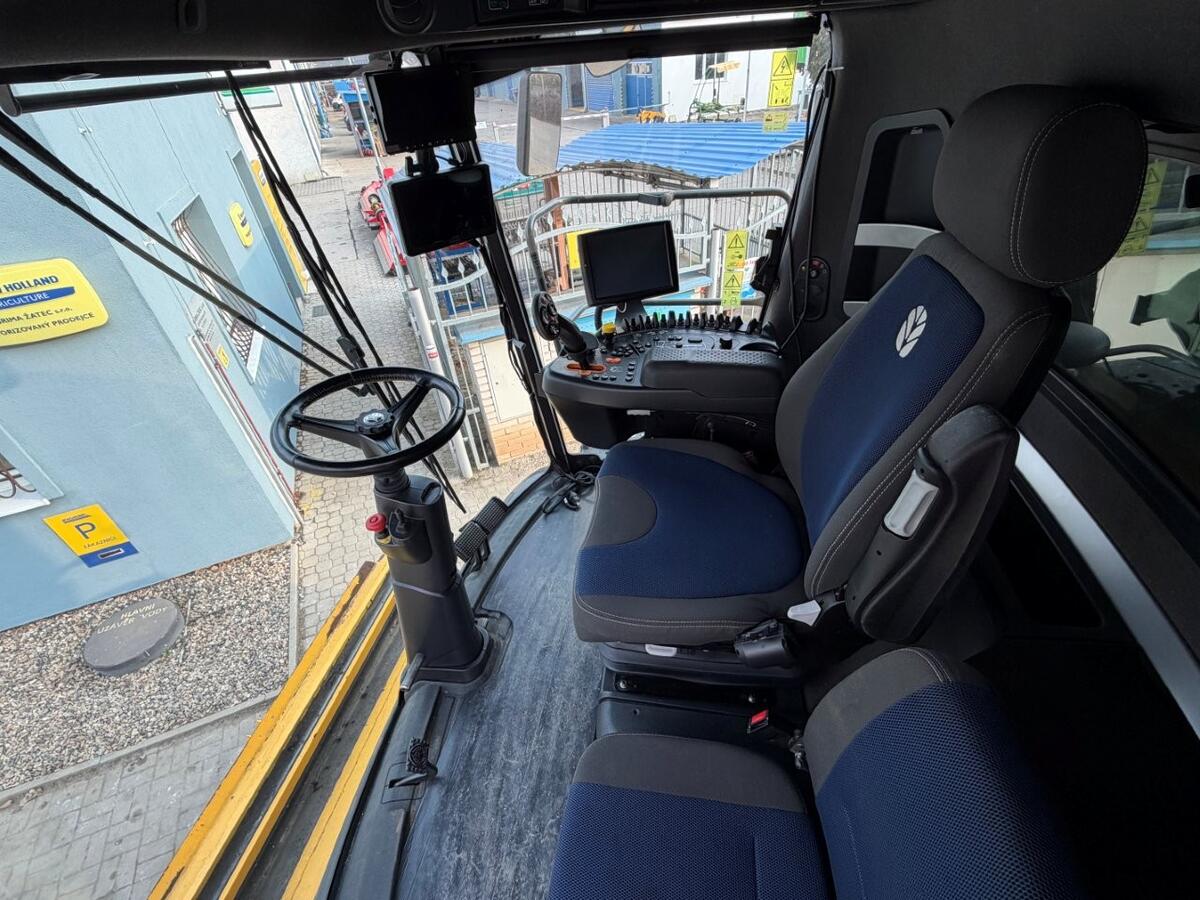 odvětrávaná sedačka, multifunkční páka, výnosoměr, drtič slámy, vlhkoměr, kožený volant, systém automatického řízení, satelitní navigace, automatická klimatizace, vyhřívaná sedačka, přepravní podvozek pod adaptér, radio s bluetooth, monitor, lednička, elektricky nastavitelná zrcátka, aktivní děliče