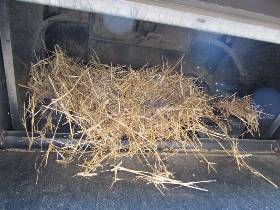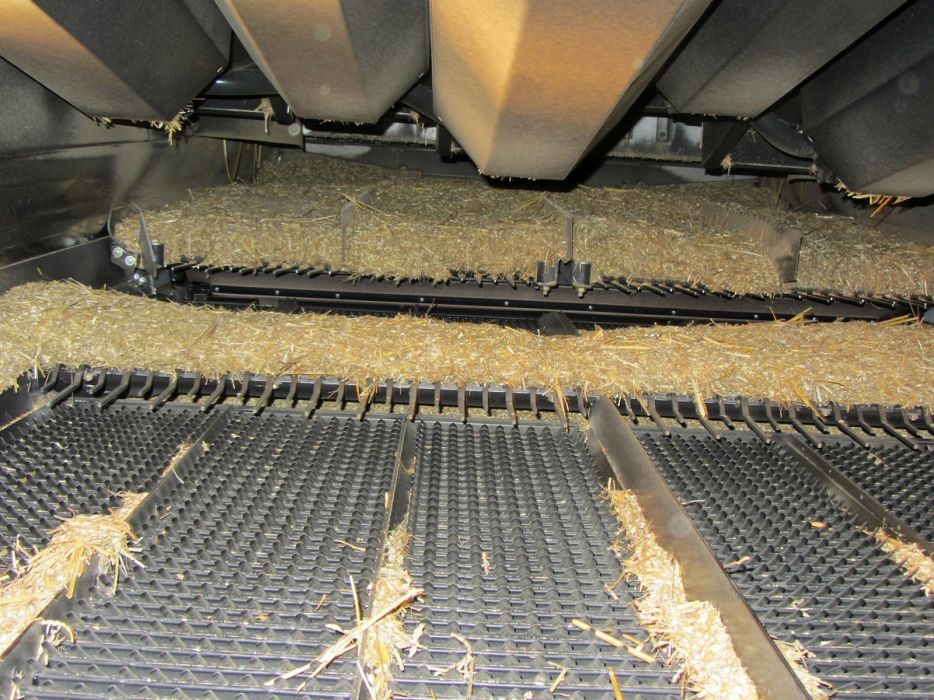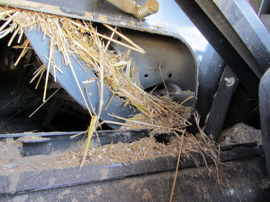- Zlomky na vynášecí desce – moc zlomků znamená, že mlácení je příliš agresivní tj. je potřeba povolit koš a snížit otáčky mláticího bubnu.