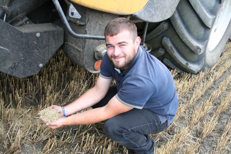 - 5 a více zrn na konci vytřásadla znamená, že mlácení je málo agresivní. Musím přitáhnout koše a zvýšit otáčky bubnu (pozor na maximální otáčky bubnu pro danou plodinu, např. max. 900 ot./min. pro pšenici – pak se začíná štípat zrno).
