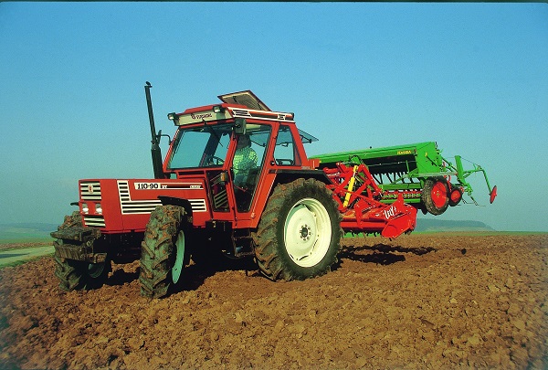 Série 90 traktorů Fiat byla dobře známá a vyráběla se dlouho. Na obrázku model 110-90 se šestiválcovým motorem o výkonu 82 kW/110 k