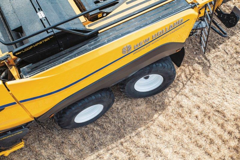 Poprvé v historii není u tandemové nápravy použitá kyvná mechanicky odpružená náprava, ale samostatně uložené hydraulicky odpružené single nápravy. Výsledkem je nejen správné odpružení lisu, ale i uživatelsky jednoduchý přístup ke spodním napínákům uzlovače. Jelikož není zde použita žádná lisová pružina ani podpěra uložení tandemu, je prostor mezi koly zcela volný.