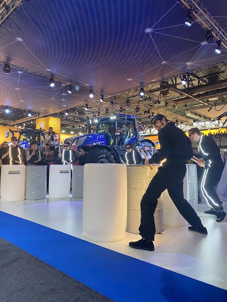 Představení nového modelu traktoru New Holland T7.300 z řady LWB. Tak přesně kolem tohoto traktoru se vše točilo v Paříži, kde se výstava konala. My jsme se na tento traktor poprvé podívali na výstavě EIMA v Bologni a moc se těšíme, až traktor dorazí k nám a budeme ho moct více prozkoumat, protože i v Bologni se na podívání do kabiny traktoru čekala řada, a vyfotit traktor bez lidí bylo téměř nemožné.