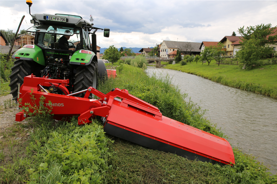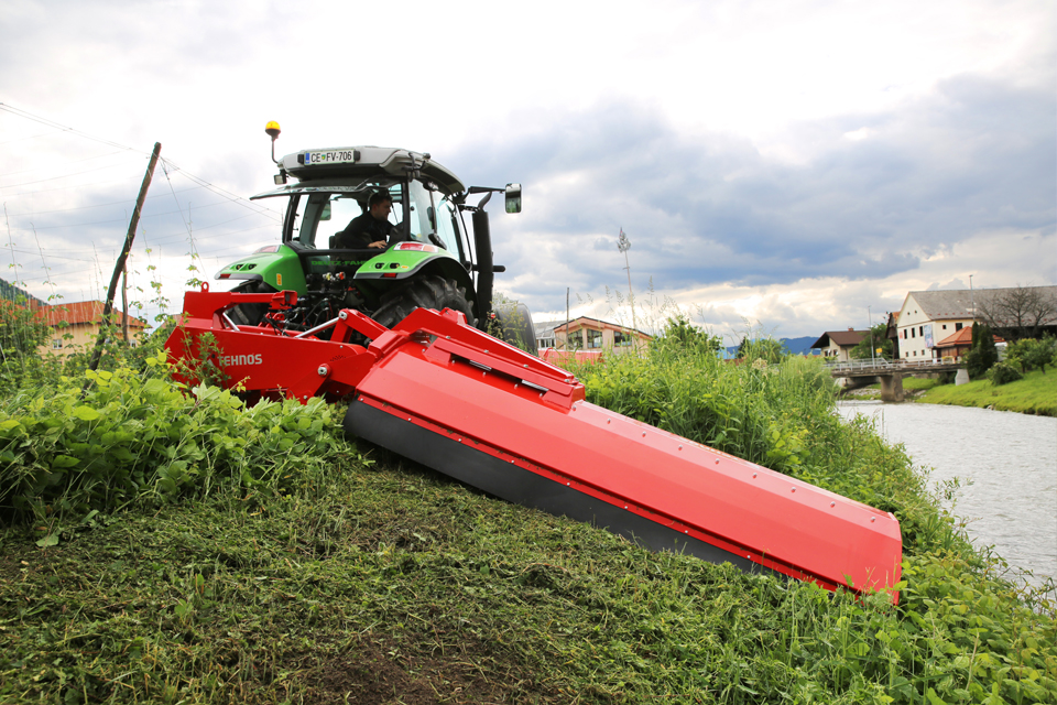 Stroj je ideální pro práci ve svahu (podél komunikací, příkopů, vodních toků…) se sklonem +90°/-60°, díky robustnému paralelogramu.