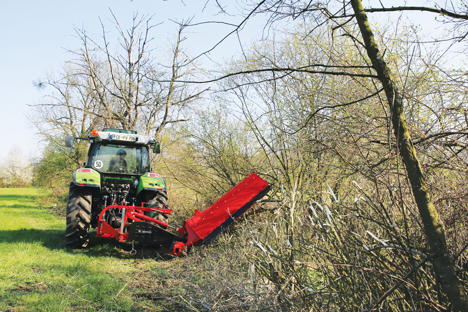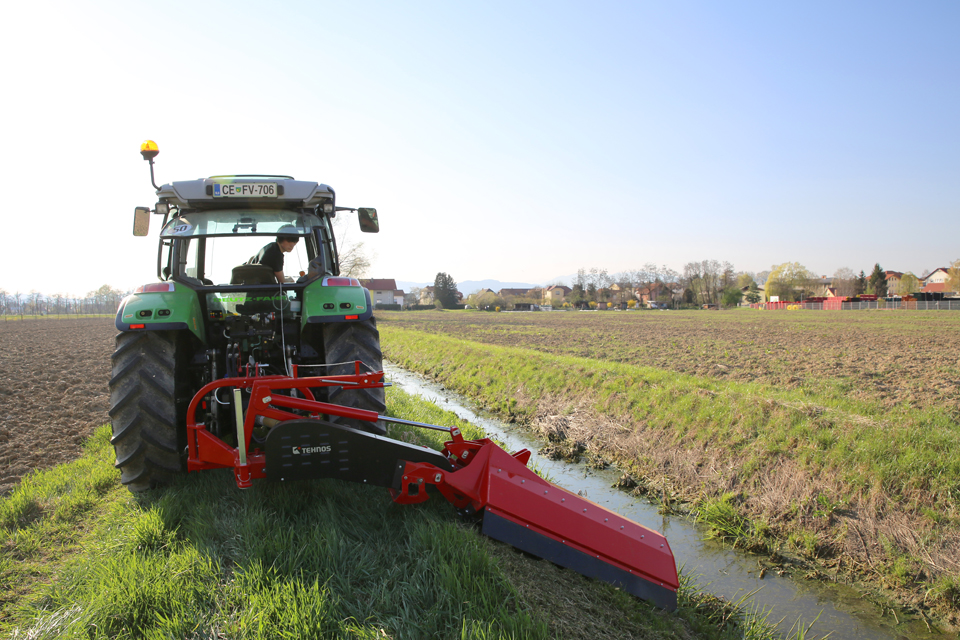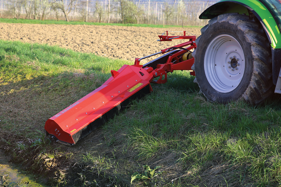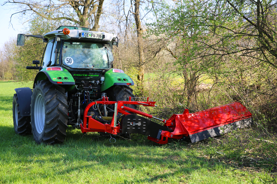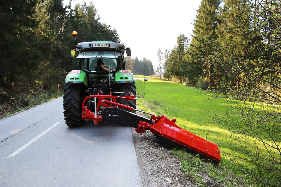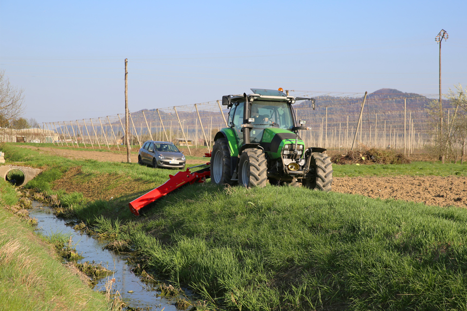 Stroj je ideální pro práci ve svahu (podél komunikací, příkopů, vodních toků…) se sklonem +90°/-60°, díky robustnému paralelogramu.