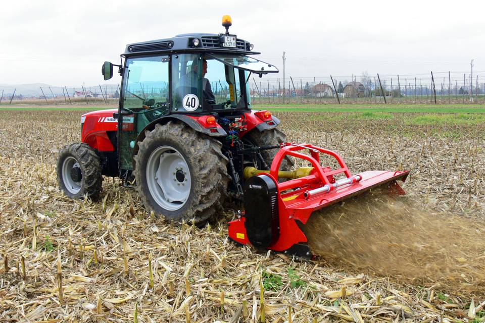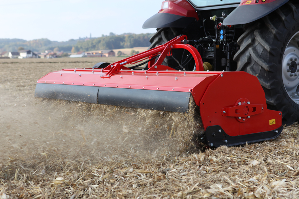 Robustný všestranně využitelný profesionální mulčovač pro práci na zemědělských plochách, vhodný pro mulčování obilných kukuřičných strnišť luk a plodin určených na zelené hnojení.
