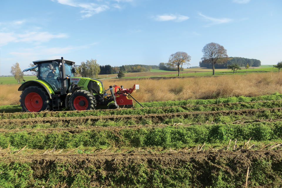 Speciální stroj je určen pro mulčování rostlinného materiálu při pěstování chřestu.